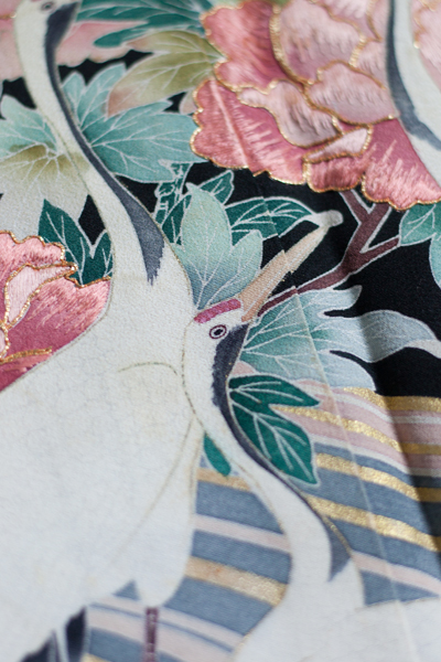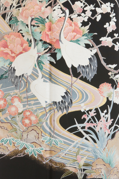 さらに、立ち姿の鶴が加わることで、留袖のデザインに深みと繊細さが加わります。鶴は長寿や幸福を象徴する動物として、日本の伝統的なモチーフの中でも特に人気があります。その優美な姿は、留袖の上品さを一層際立たせています。