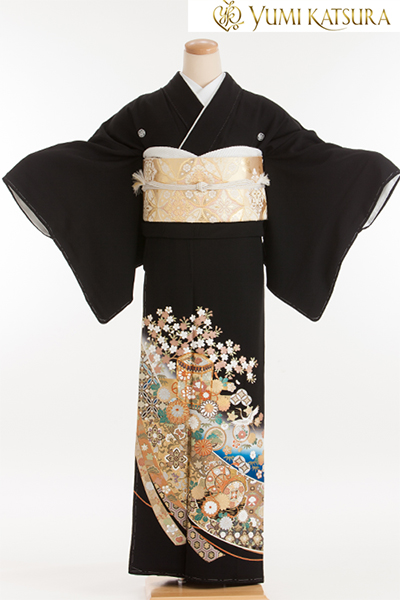 ■正絹 黒留袖 五つ紋 120079 桂由美 宝尽し・ブルーぼかし