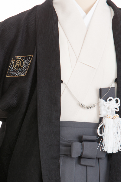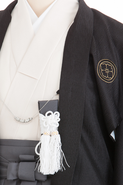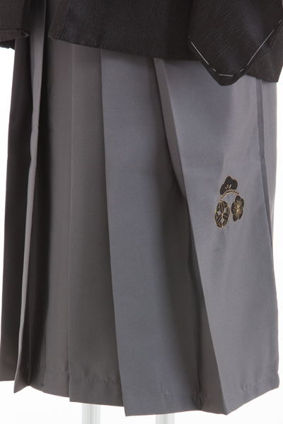 ベージュの着物はシンプルながらも、和の伝統的な美しさを保持。袴のグレーは落ち着いた色調でありながらも、独特の存在感を放ちます。このセットは、特別な場面での華やかさとともに、格式と品格を併せ持った一式となっています。