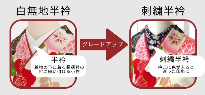 長襦袢の【半衿】を可愛い刺繍入りにグレードアップ出来るようになりました。